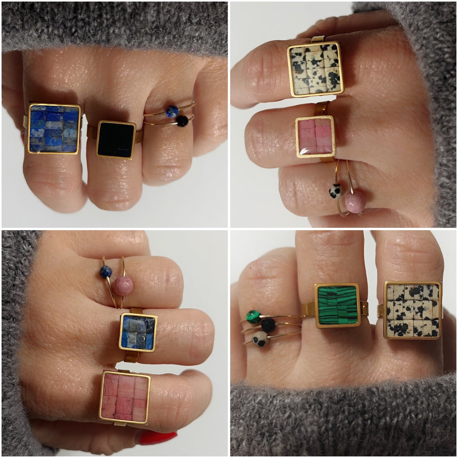 Nos bagues Nadette sont conçues avec des pierres semi-précieuses authentiques serties sur de l'acier inoxydable de qualité supérieure.