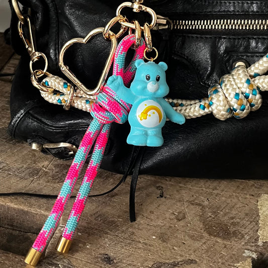 C'est trop, grand, gros, voyant, fun, léger, joyeux et c'est génial. Je m'en sers comme porte clefs plus que comme gri-gri de sac, à chaque fois que je les sors c'est un petit moment "paillette" qui éclaire ma journée :)