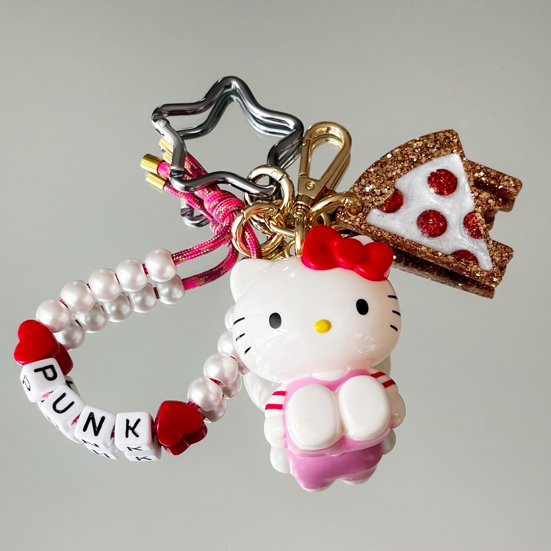 Tous sont fabriqués à la main par mes soins, à l’exception du mousqueton et du jouet.