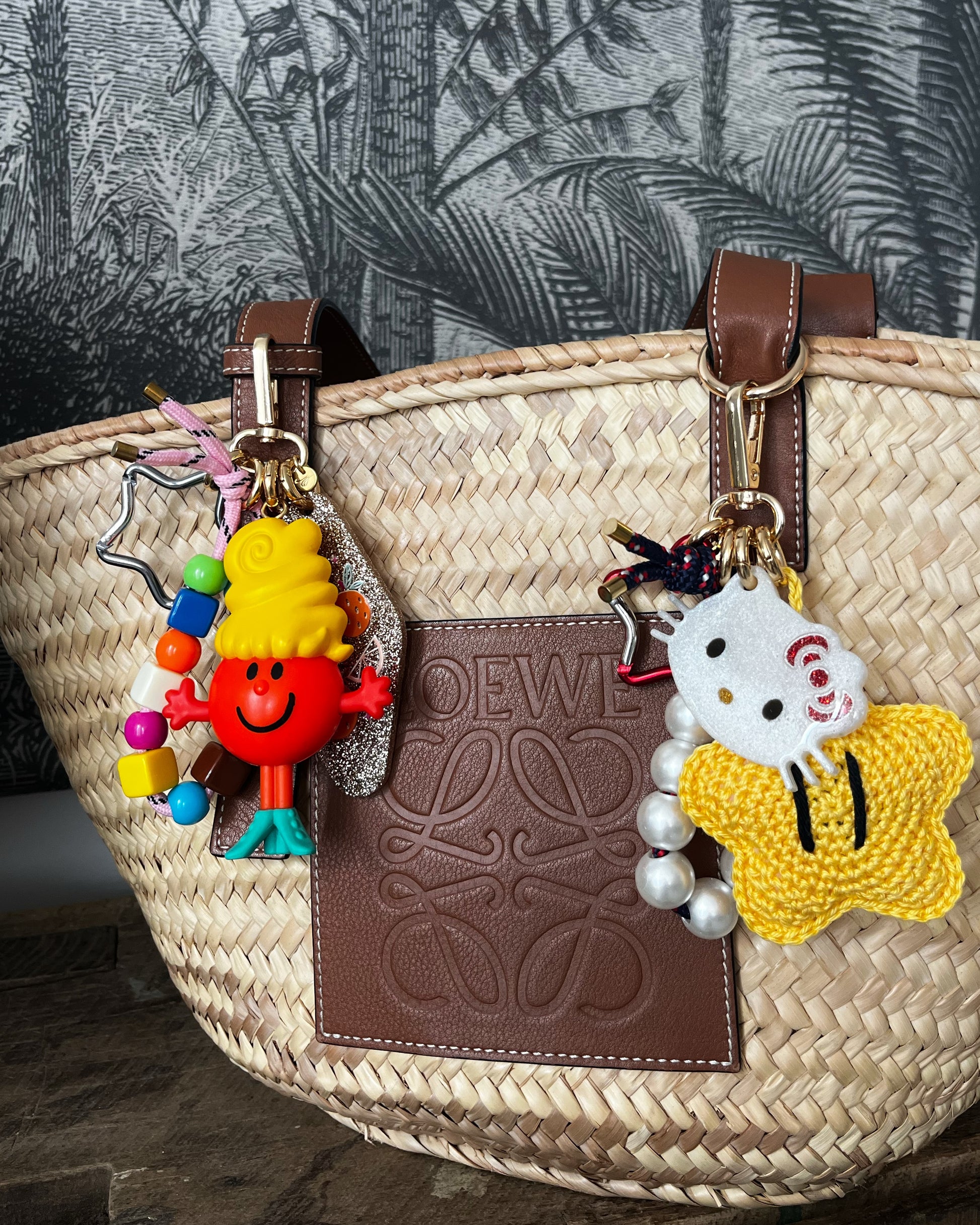 Tous sont fabriqués à la main par mes soins, à l’exception du mousqueton et du jouet.