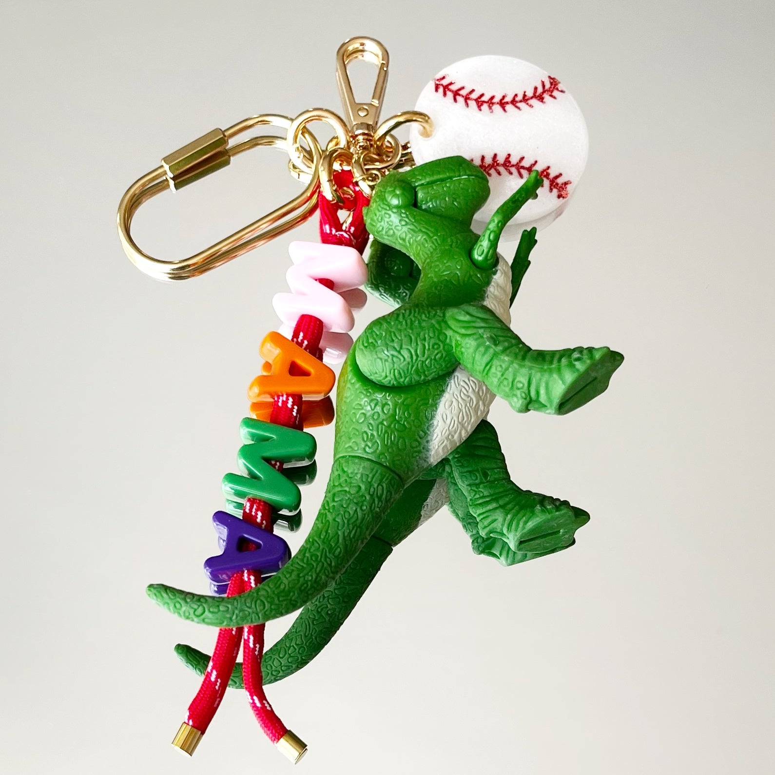 Ce grigri est composé de 4 éléments : un pendentif en résine époxy, un cordon d’escalade orné de perles, un mousqueton et un petit jouet que j'ai soigneusement chiné.