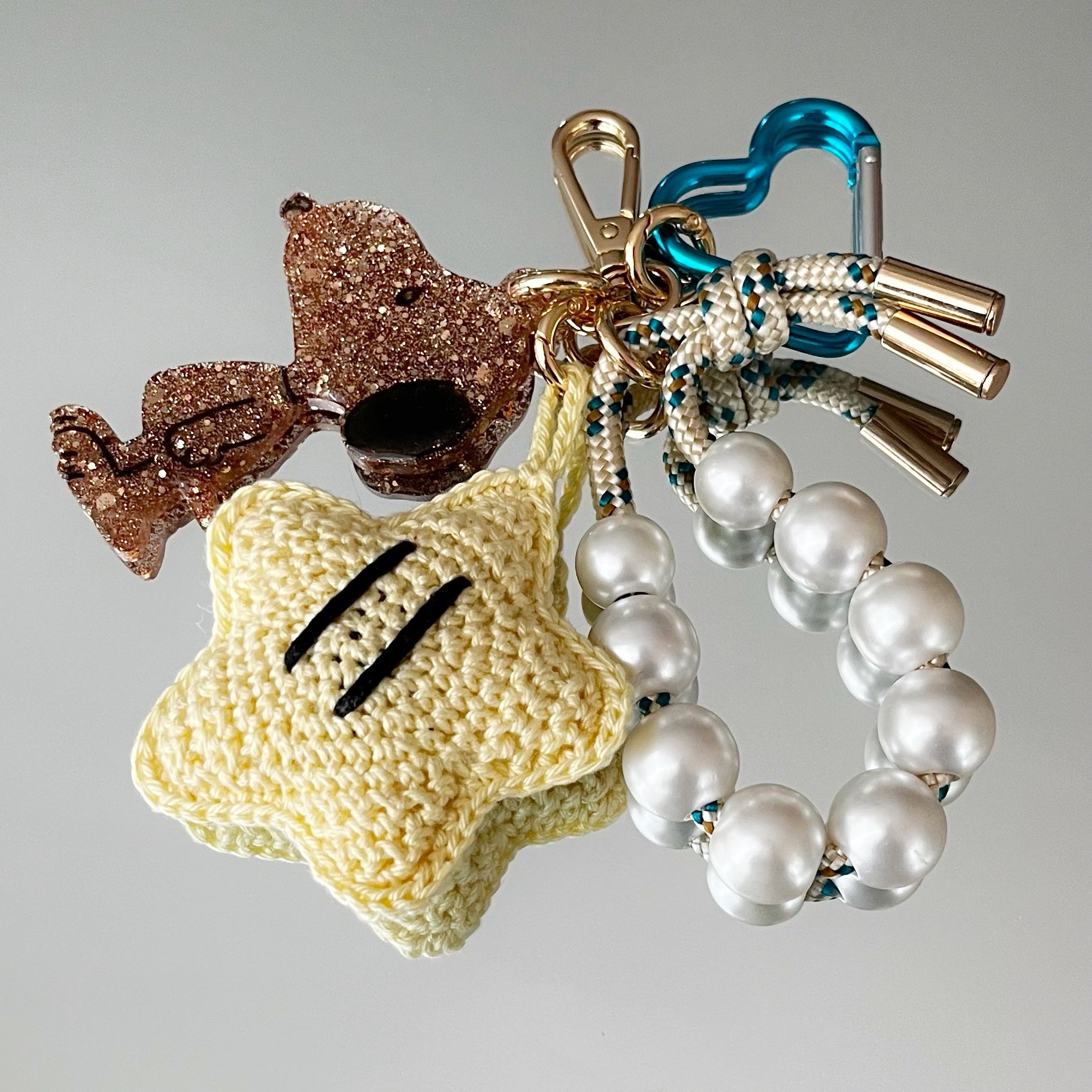 Ce grigri est composé de 4 éléments : un pendentif en résine époxy, un cordon d’escalade orné de perles, un mousqueton et un grigri en crochet, tous réalisés à la main avec soin (à l’exception du mousqueton).