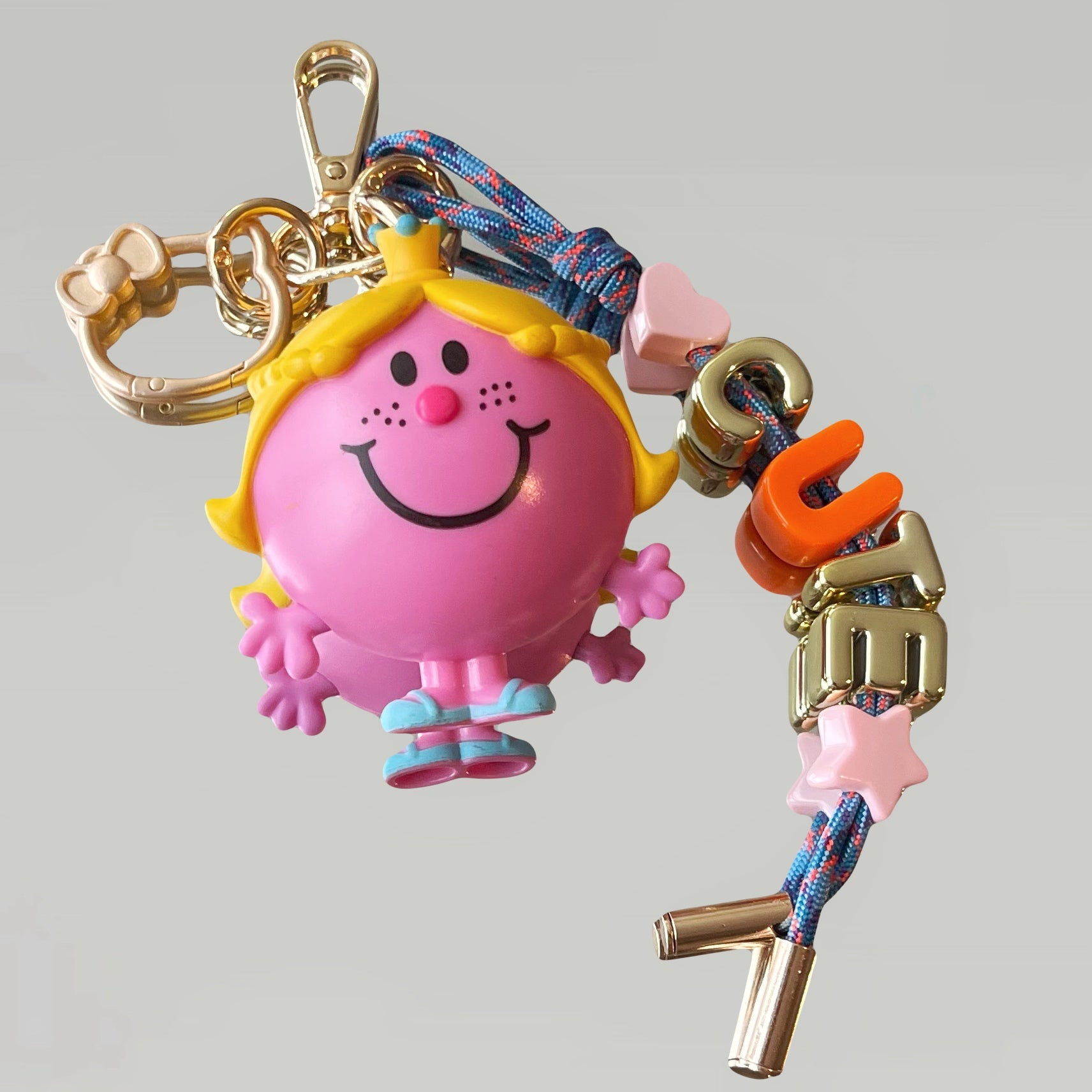 Ce grigri se compose de trois éléments : un mousqueton, un cordon d’escalade orné de perles, et un petit jouet soigneusement chiné.