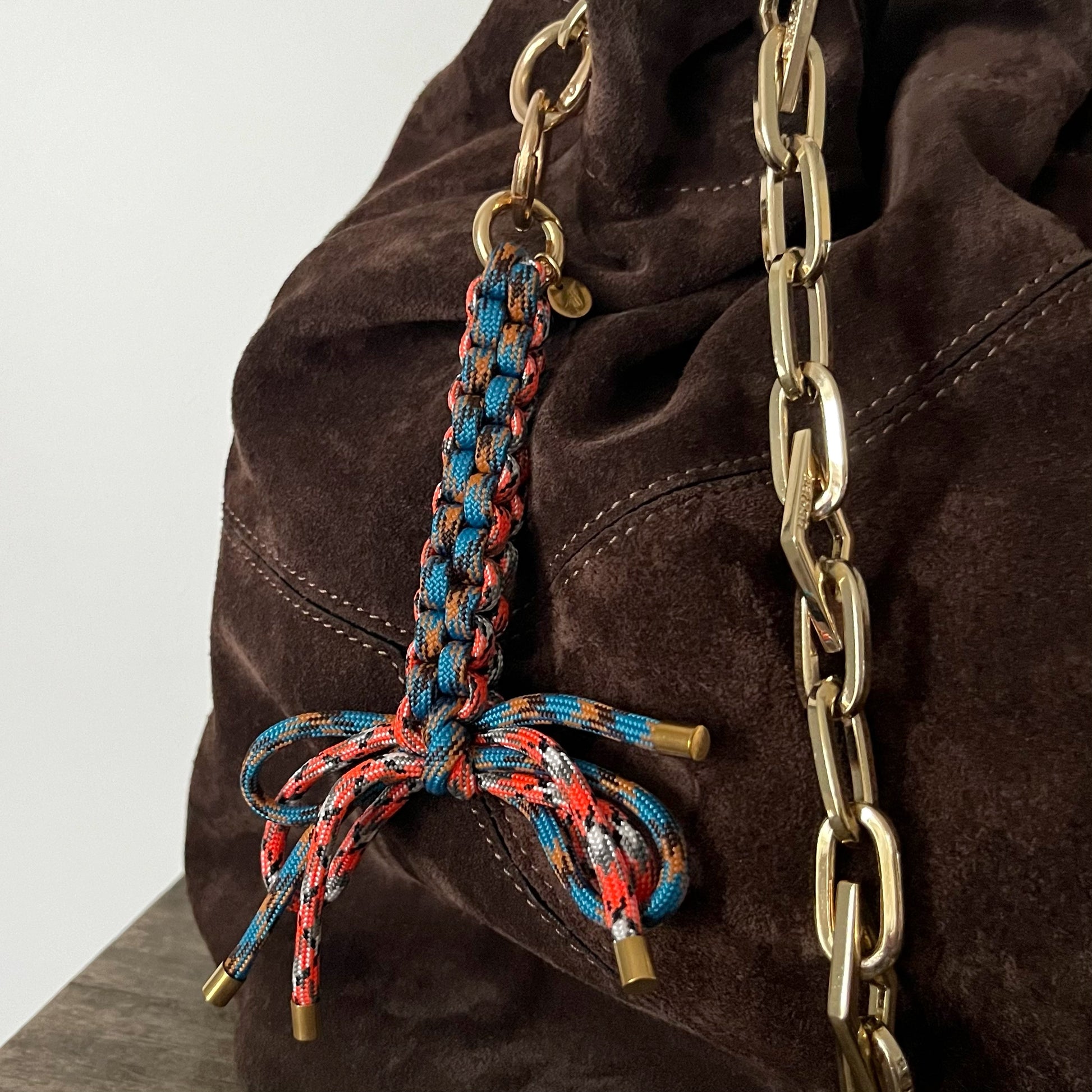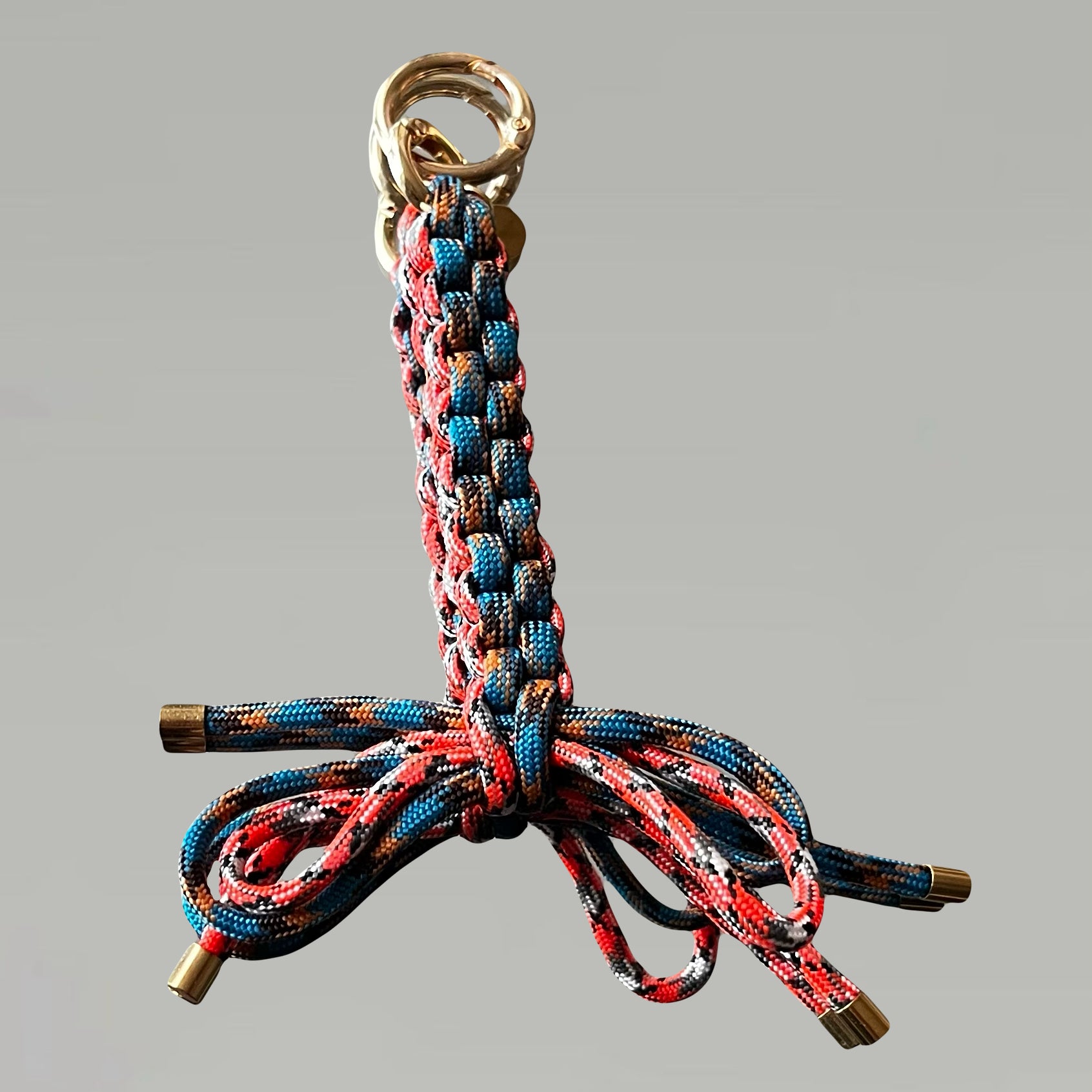 Grigri de sac réalisé en cordelettes d’escalade, entièrement à la main, le mousqueton vous permet de l’accrocher sur votre sac, vos clés, ou vous le souhaitez 😉